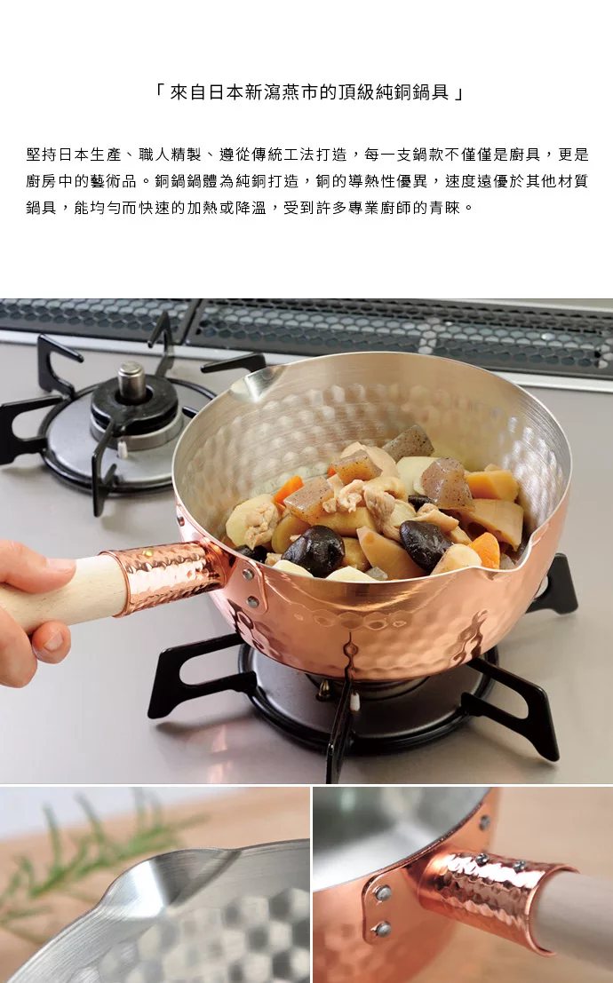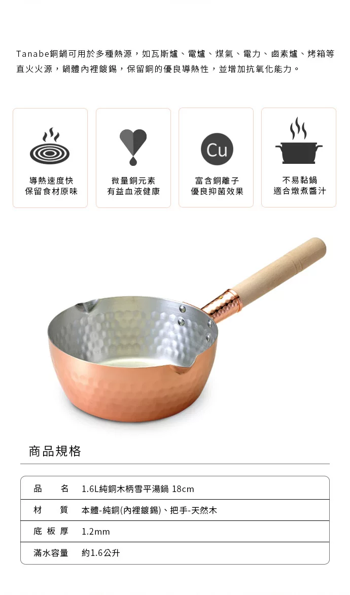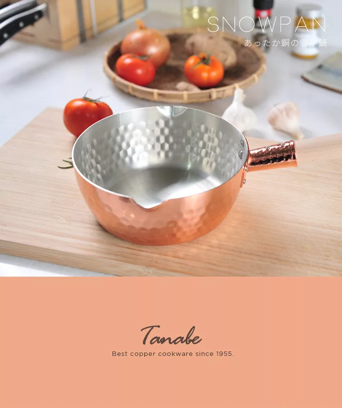TANABE 1.6L pure copper wooden handle snow pan - 18cm