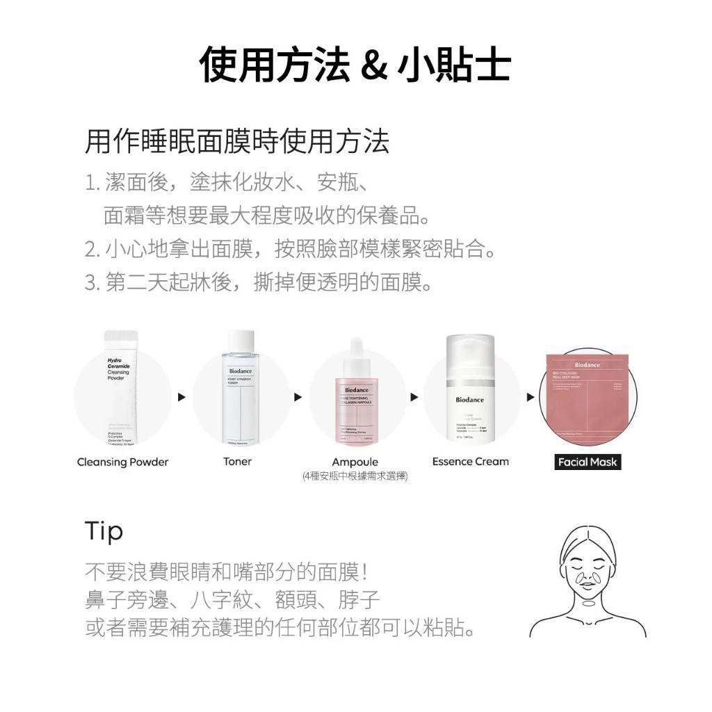 - BIODANCE膠原蛋白深層面膜,能夠將面膜中最後一滴安瓿的每一滴都直接吸收到肌膚中