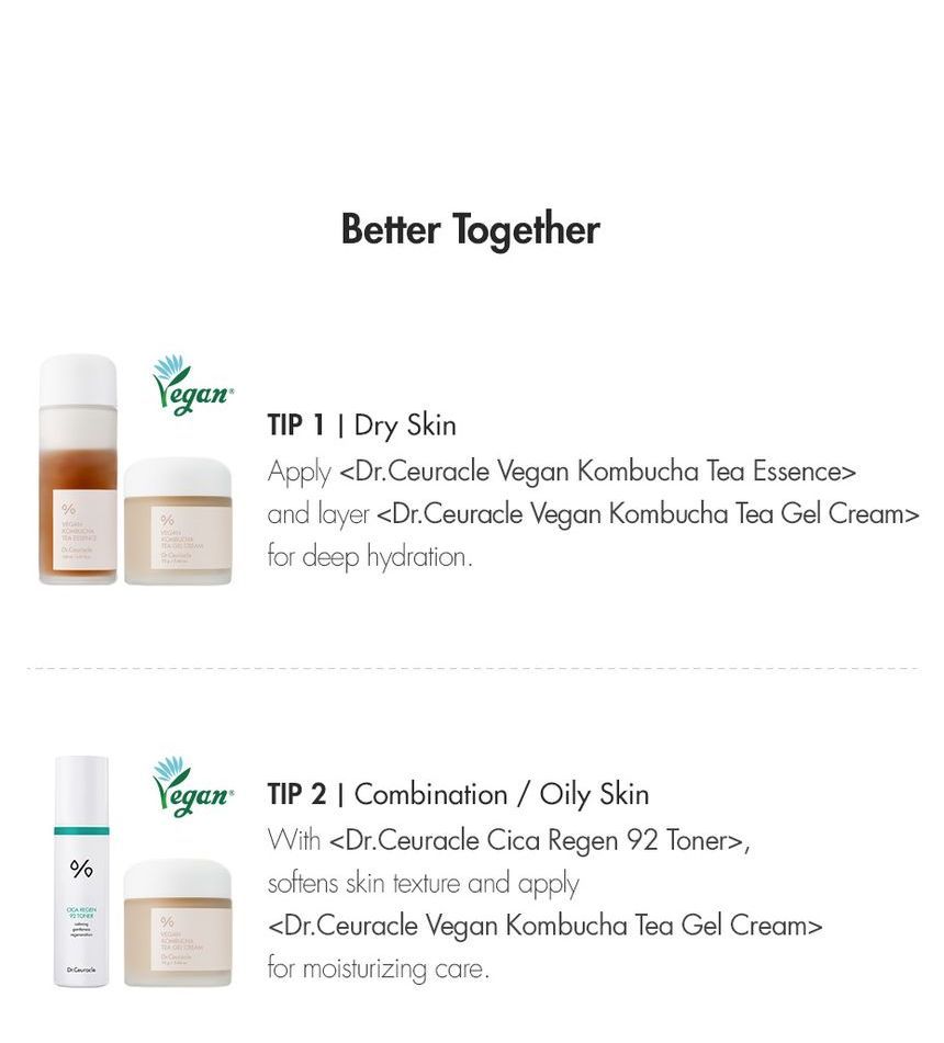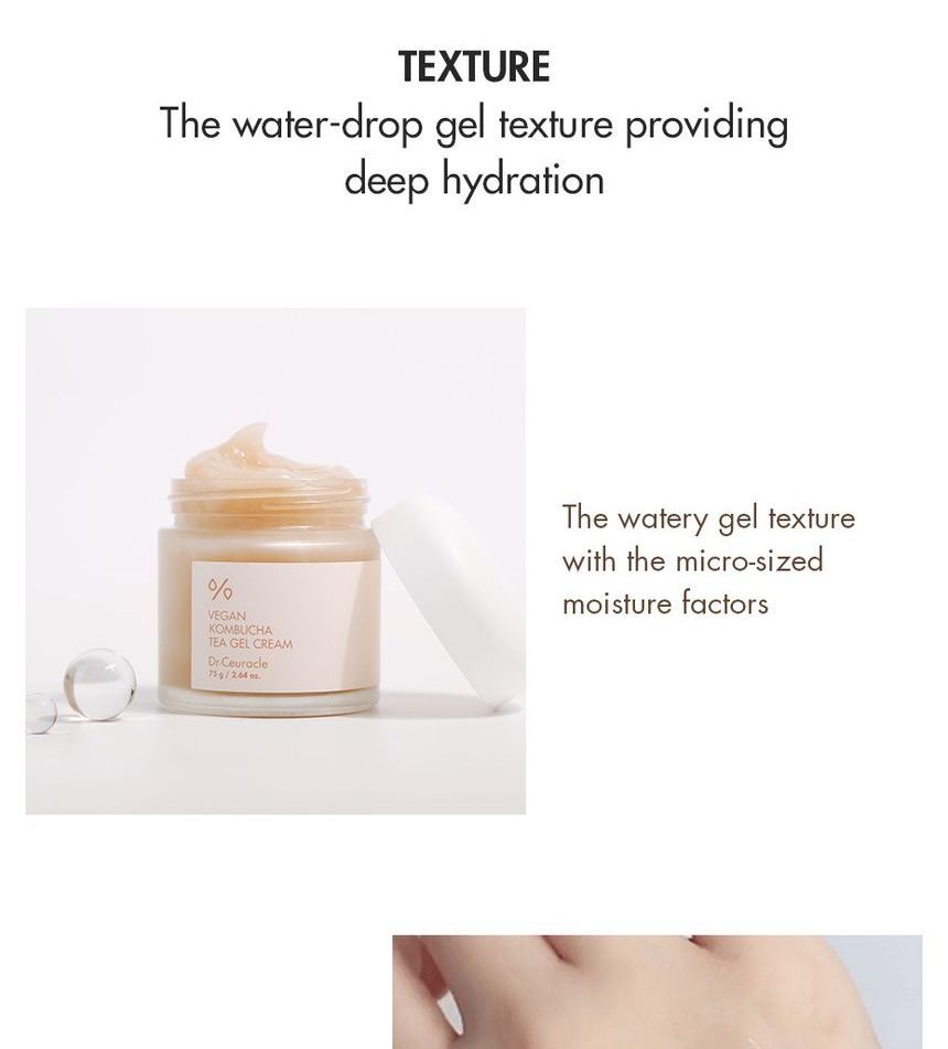 Dr.Ceuracle 純素康普茶凝膠霜是一款保濕滋養凝膠保濕霜,適合脫水和油性肌膚。