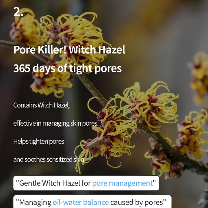 - 富含金縷梅萃取物,有助於收緊擴大的毛孔並控製過多的皮脂分泌
