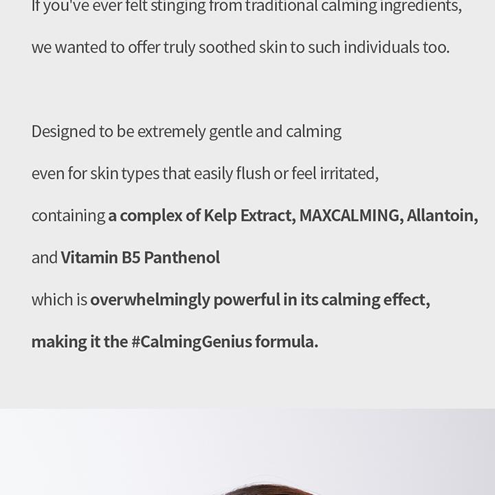 - 泛醇和尿囊素具有溫和的鎮靜作用,可舒緩因日常刺激和外部侵害而引起的皮膚問題