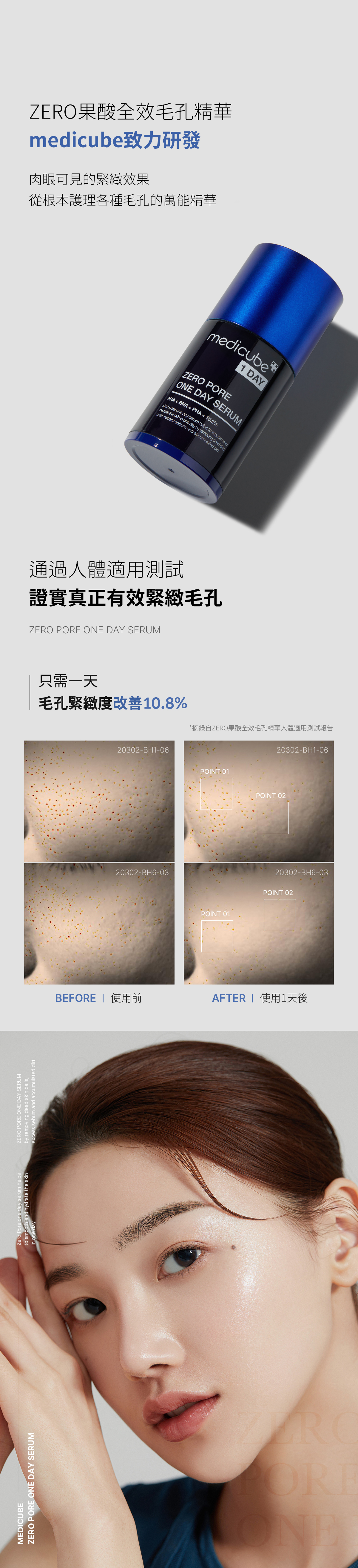 使用零毛孔一日精華,體驗全新的毛孔保養世界。含有 15.2% 的三重酸 +a,是去除所有皮膚層角質、細化、保護和恢復皮膚活力的最佳成分。