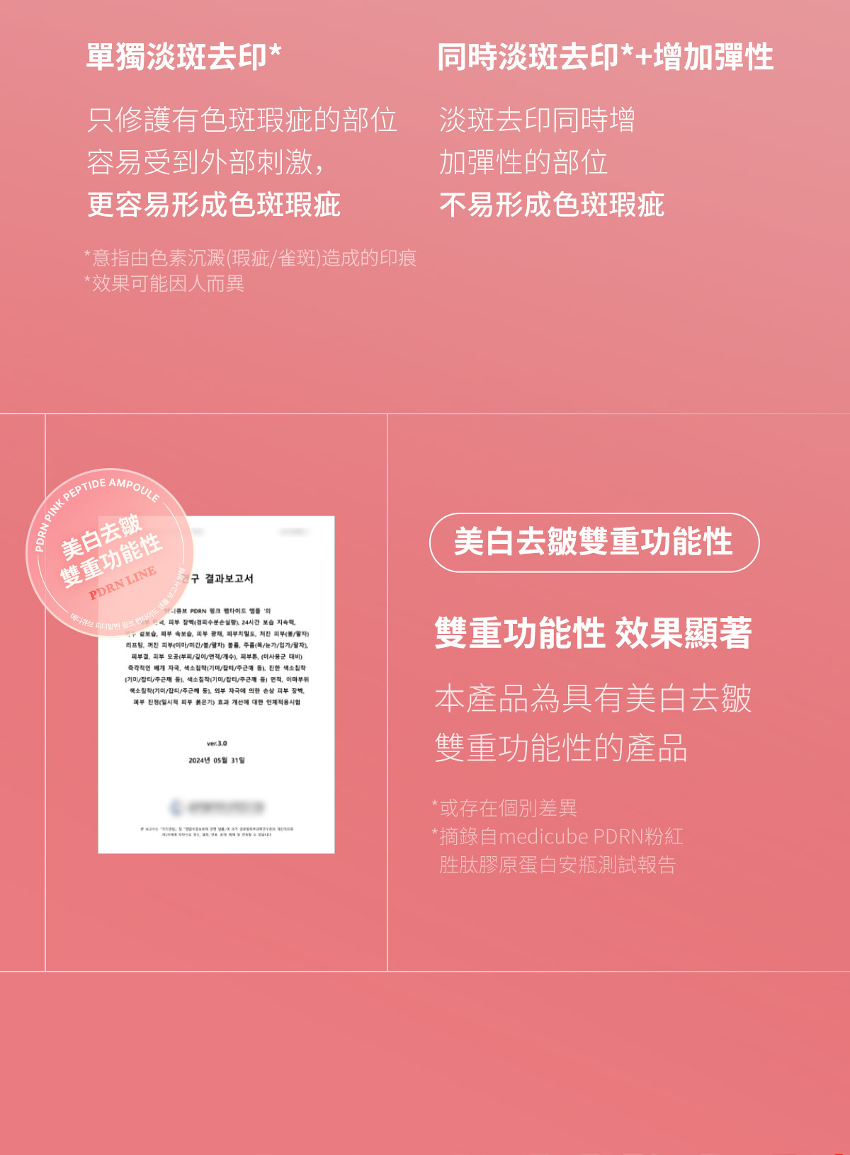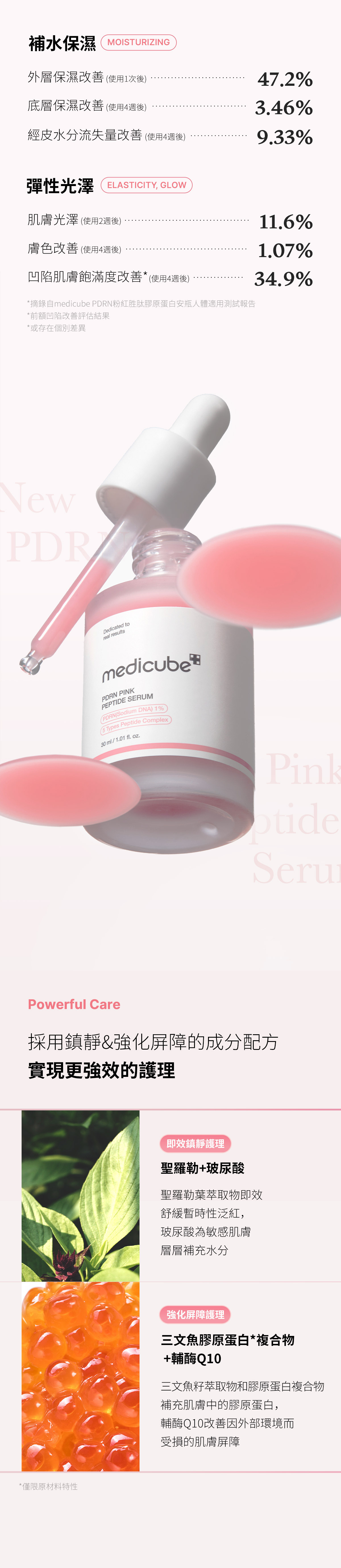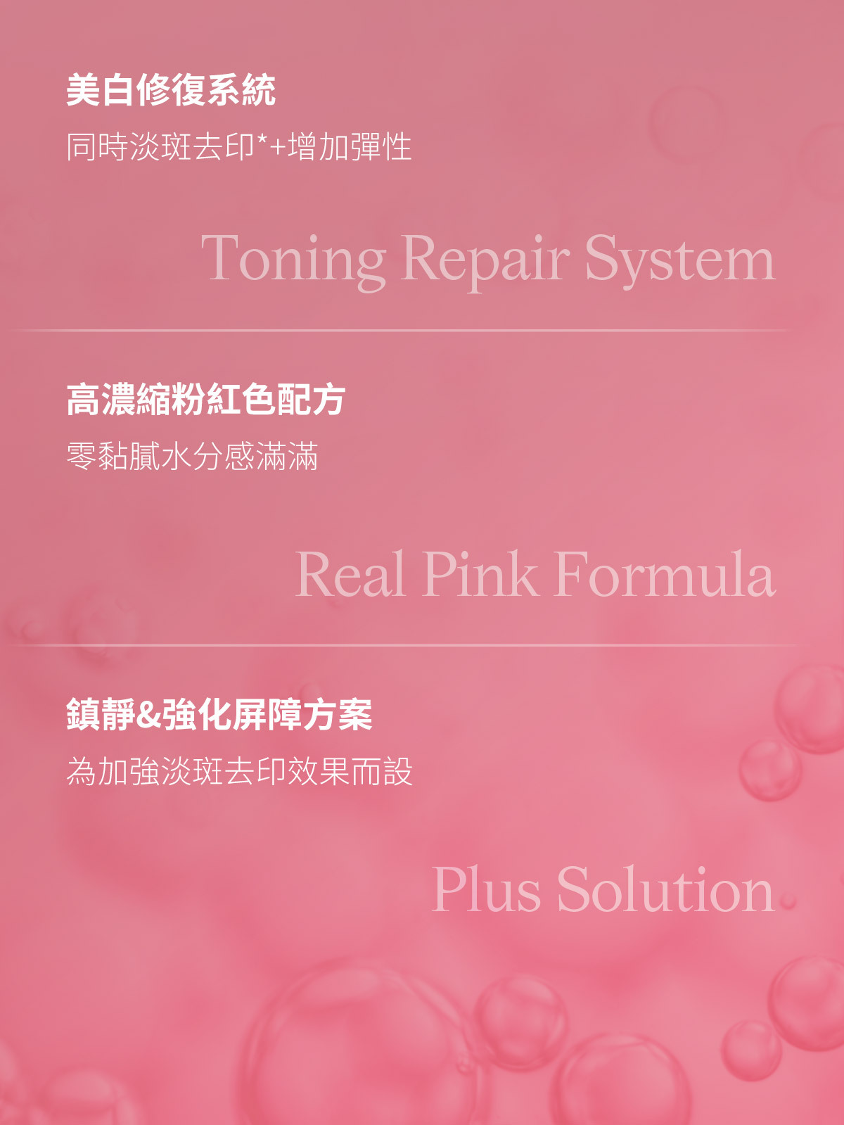 主要成分:含有鮭魚 PDRN、五種勝肽複合物、菸鹼醯胺、腺苷和聖羅勒葉萃取物,該配方可有效護理不均勻的膚色和彈性。